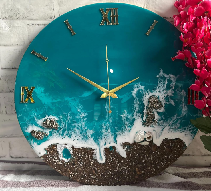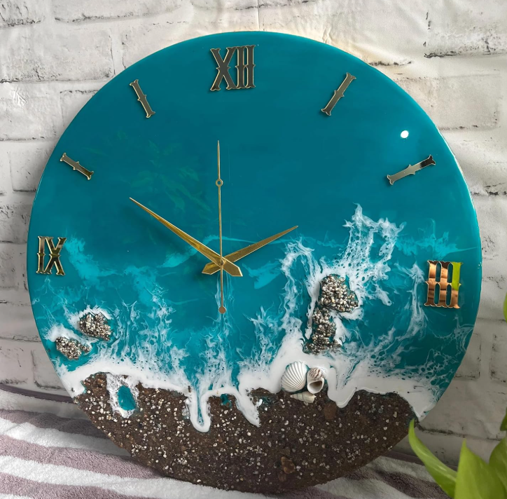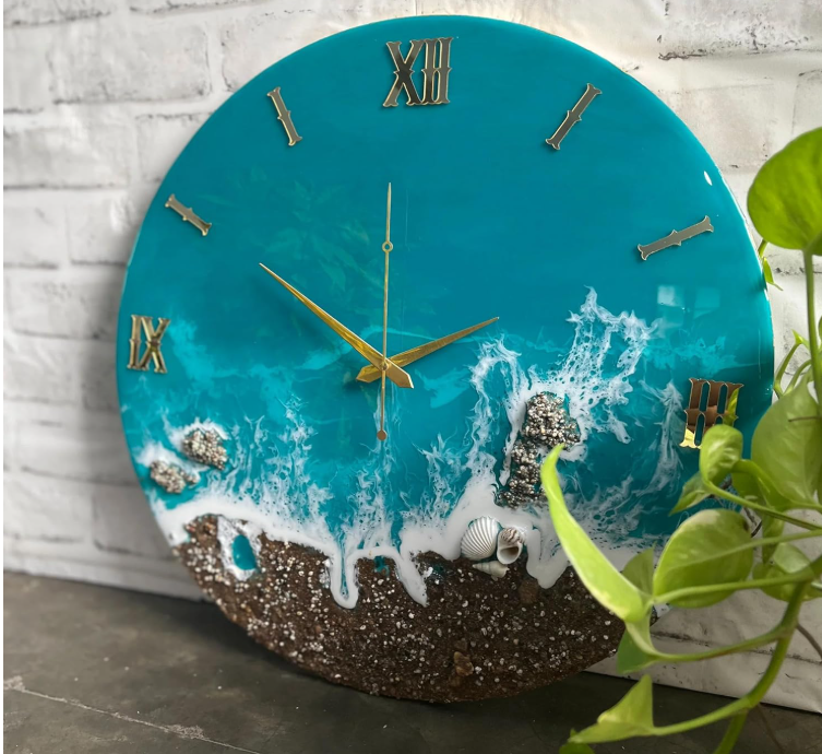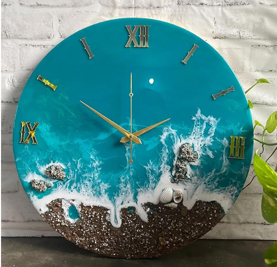 ✅ Handcrafted Resin Art Clock: Each clock is individually handmade using premium resin, creating a unique marble–agate effect with elegant teal and white tones.